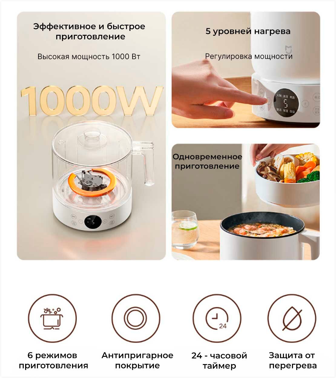 Многофункциональная кастрюля Xiaomi Mijia Multifunctional Electric Cooker 1.5L White (MEC01): сравнение цен, характеристики, фото, актуальное наличие и цены.