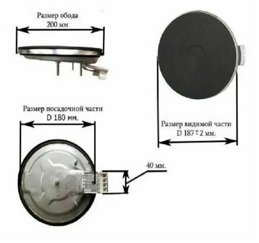 Характеристики конфорки для электроплит ЭКЧ-180-1.5: