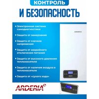 | Особенности | воздухоотводчик, встроенный расширительный бак, встроенный циркуляционный насос, манометр, предохранительный клапан, разъем для подключения внешнего управления, термометр |