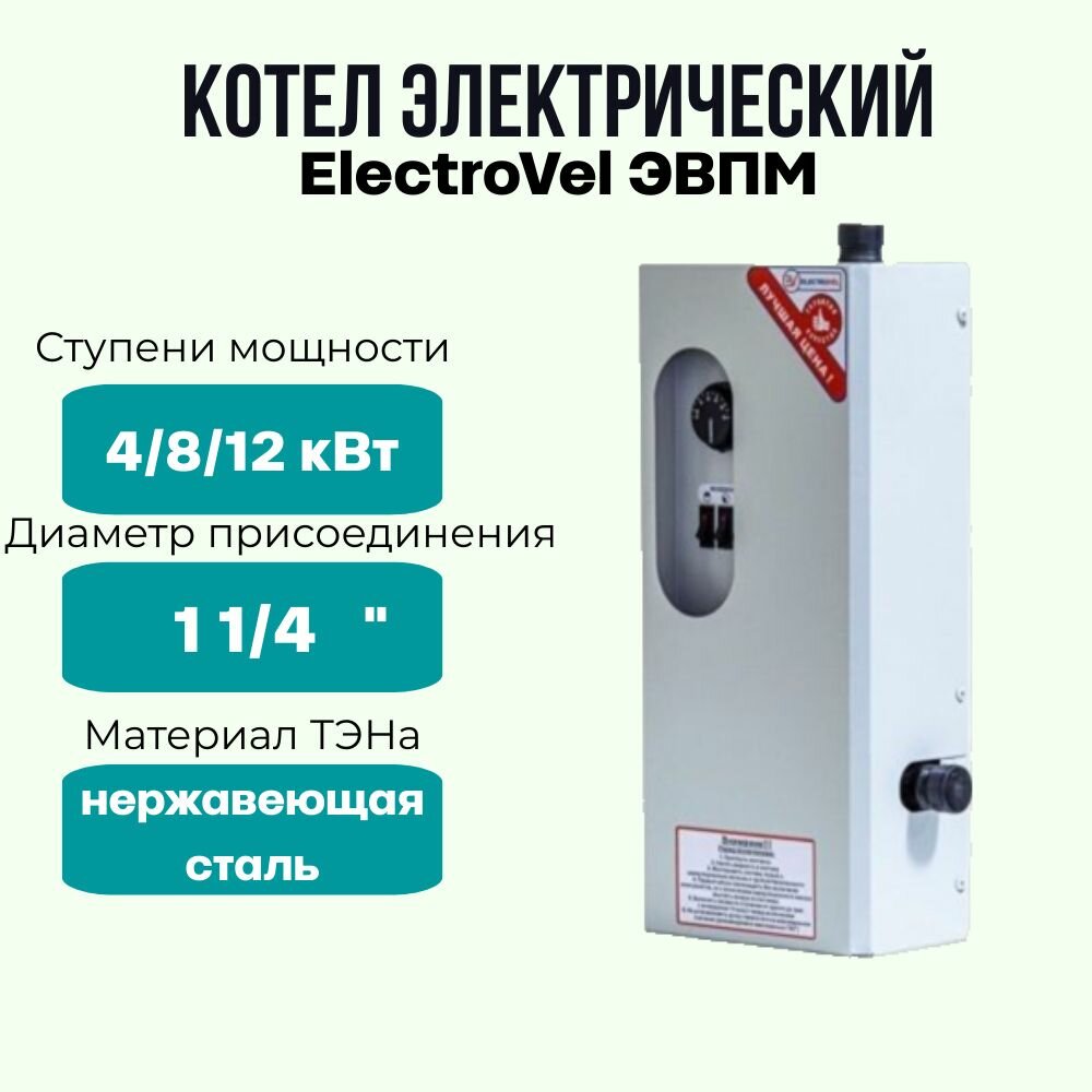 Электрокотел отопительный ElectroVel ЭВПМ, мощность 12 кВт, площадь обогрева 120 кв2, настенный, котел электрический: сравнение цен, характеристики, фото, актуальное наличие и цены.