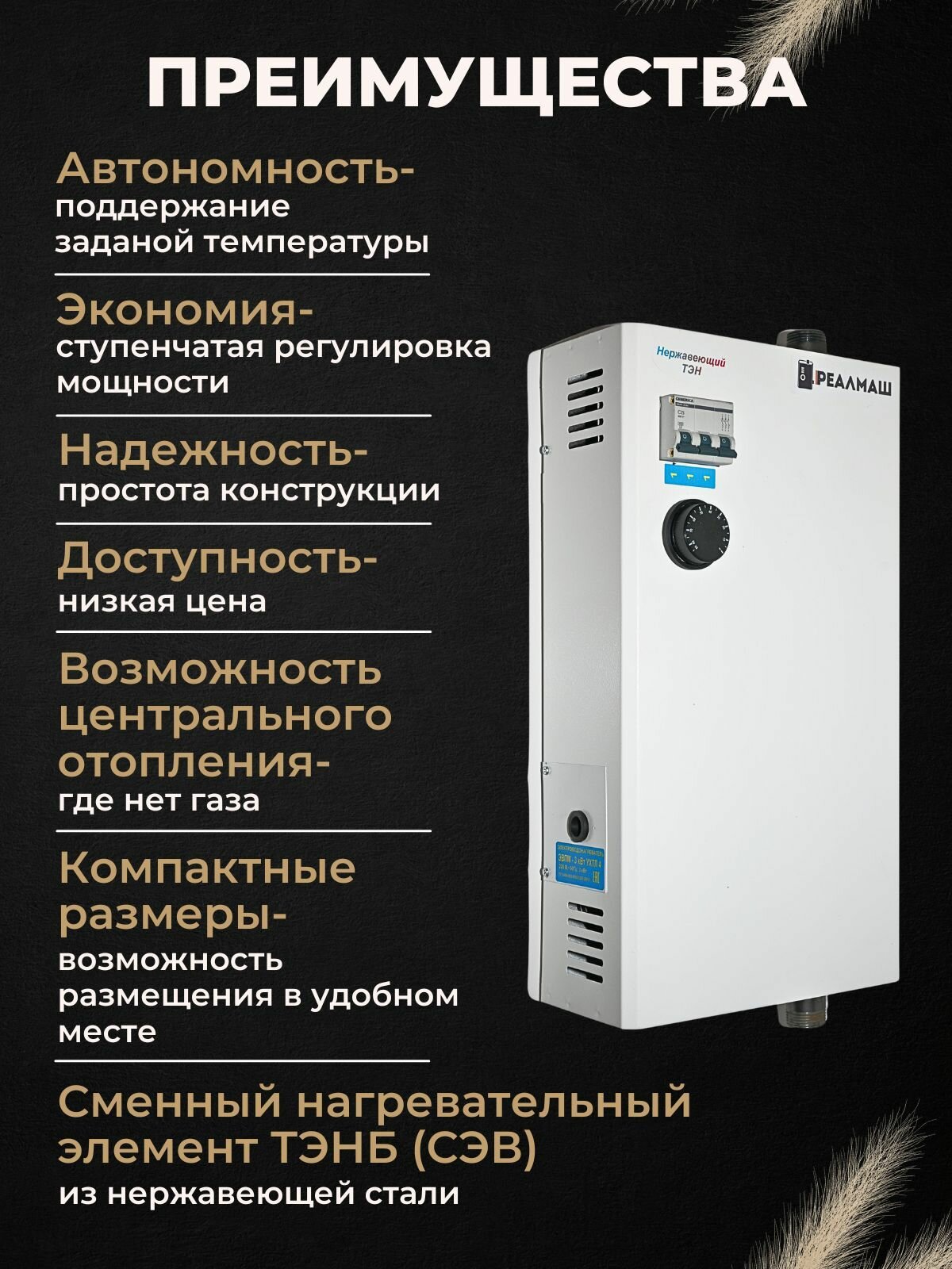 Электрокотел Реалмаш ЭВПМ — 6 кВт автомат с нержавеющим тэном котел электрический для отопления: сравнение цен, характеристики, фото, актуальное наличие и цены.