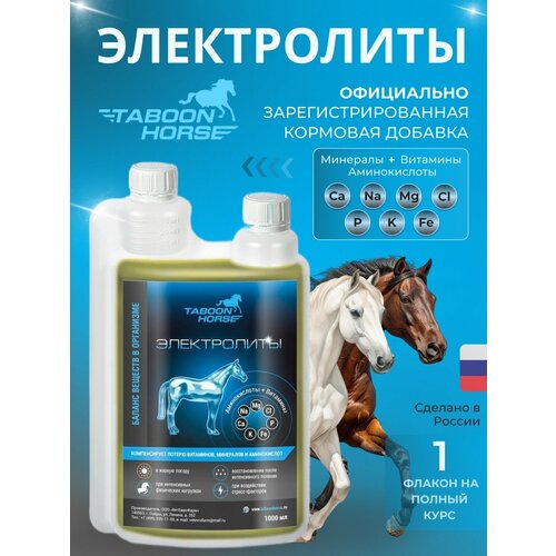 Комплексная кормовая добавка для компенсации потерь минералов, витаминов и аминокислот после интенсивных физических нагрузок и воздействия стресс-факторов. «Табун Хорс Электролиты» представляет собой комбинацию минералов, витаминов и аминокислот в физиологически обоснованном соотношении, пропорциональном макро и микро элементному составу пота лошади, что позволяет восполнить дефицит минеральных веществ, возникающий в следствии обильного потения лошади при интенсивных физических нагрузках и/или в жаркую погоду. За счет этого «Табун Хорс Электролиты» предотвращает снижение концентрации электролитов в биологических жидкостях организма, которое может возникнуть при обильном потреблении воды после интенсивного потения и способствует лучшему восстановлению после физической нагрузки.