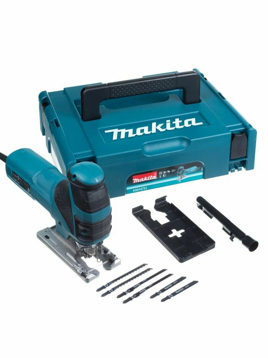| Комплектация | Электролобзик Makita 4351CTJ, комплект пилок, шестигранный ключ, крышка опорной плиты, противоскольная пластина, кейс |