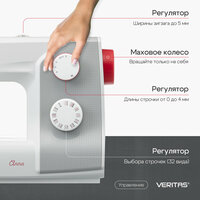 Электромеханическая швейная машинка VERITAS ANNA с вертикальным челноком порадует качественным функционалом и минималистичным дизайном корпуса, и станет незаменимым помощником в воплощении ваших творческих идей. Машина VERITAS ANNA обладает широким набором функций, имеет рычаг обратного хода для выполнения закрепки или штопки и выполняет петлю в автоматическом режиме. 32 швейных операций выбираются регулятором. Широкий выбор швейных операций позволяет пришить резинку с помощью эластичного зигзага, обработать края потайными или оверлочными строчками, усиленной трикотажной строчкой шить ткани стрейч, работать в технике пэчворк, используя декоративные строчки. Петля выполняется в автоматическом режиме за один шаг под нужный размер пуговицы. На панель машины нанесены пошаговые схемы намотки нити на шпульку и заправки верхней нити. Для удобства заправки верхней нити есть встроенный нитевдеватель. На машинке VERITAS ANNA можно прошивать широкий диапазон ткани: от шифона до джинсы (не забудьте подобрать иглы для прошиваемого материала). Дополнительный подъём лапки позволит шить многослойные изделия. Узкие детали удобно проработать с помощью съемной рукавной панели.