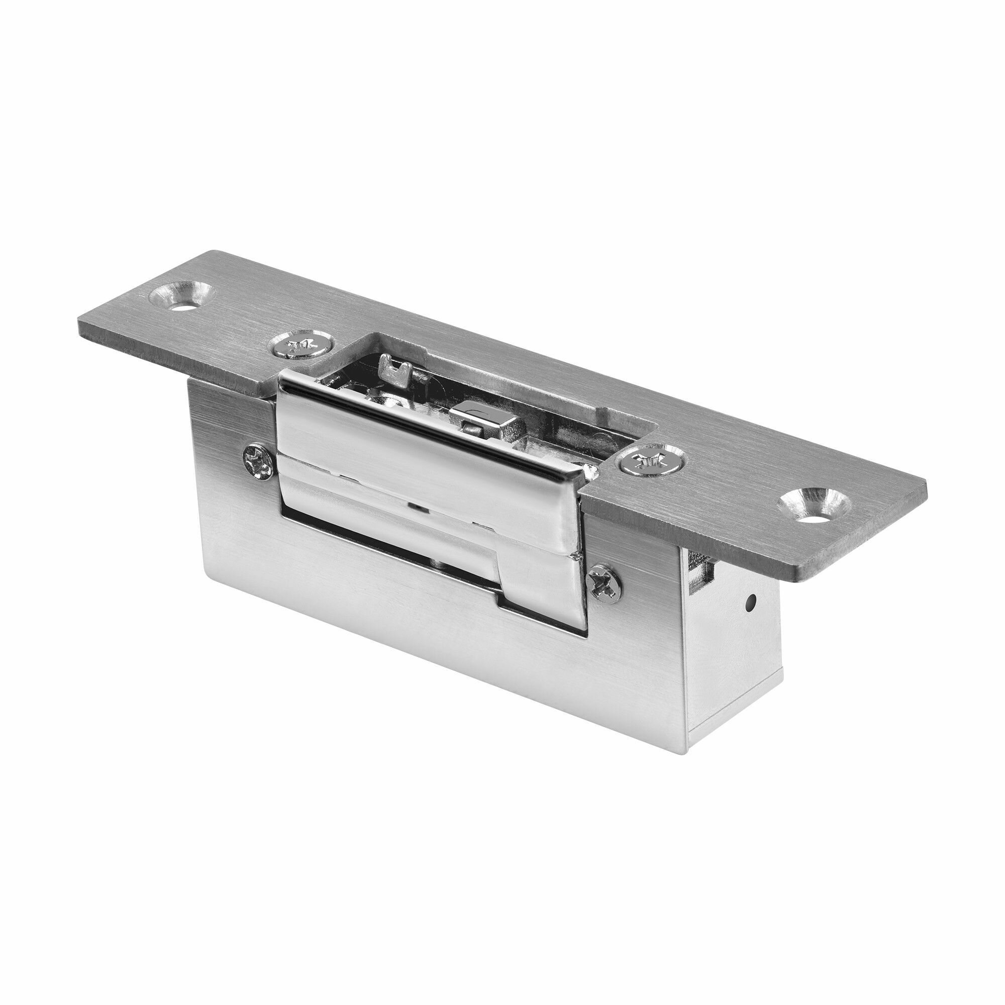 Электромеханическая защёлка Novicam DL1SP NC предназначена для запирания дверей под управлением контроллера СКУД, домофона или кодовой панели. Защёлка Novicam DL1SP NC врезается в дверную коробку и крепится с помощью короткой планки для использования совместно с косым ригелем механического замка. Благодаря врезному монтажу электромеханическая защелка не нарушает дизайн дверной коробки и подходит как для правых, так и для левых дверей. Данная защёлка является нормально-закрытой и разблокируется при подаче напряжения DC 12В на время не более 30 секунд. Кроме этого устройство имеет механическую разблокировку с помощью специального рычажка. Запирающая часть защёлки имеет возможность регулировки, которая позволяет изменять её положение относительно ригеля механического замка. Корпус защёлки и планка изготовлены из нержавеющей стали, а запирающий механизм выполнен из цинка.