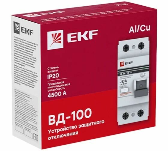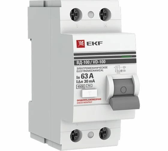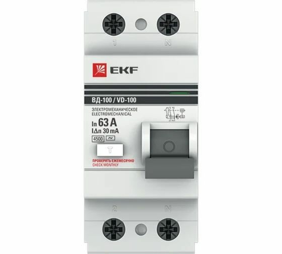 Преимущества EKF ВД-100 PROxima 2P 63А/30мА elcb-2-63-30-em-pro: