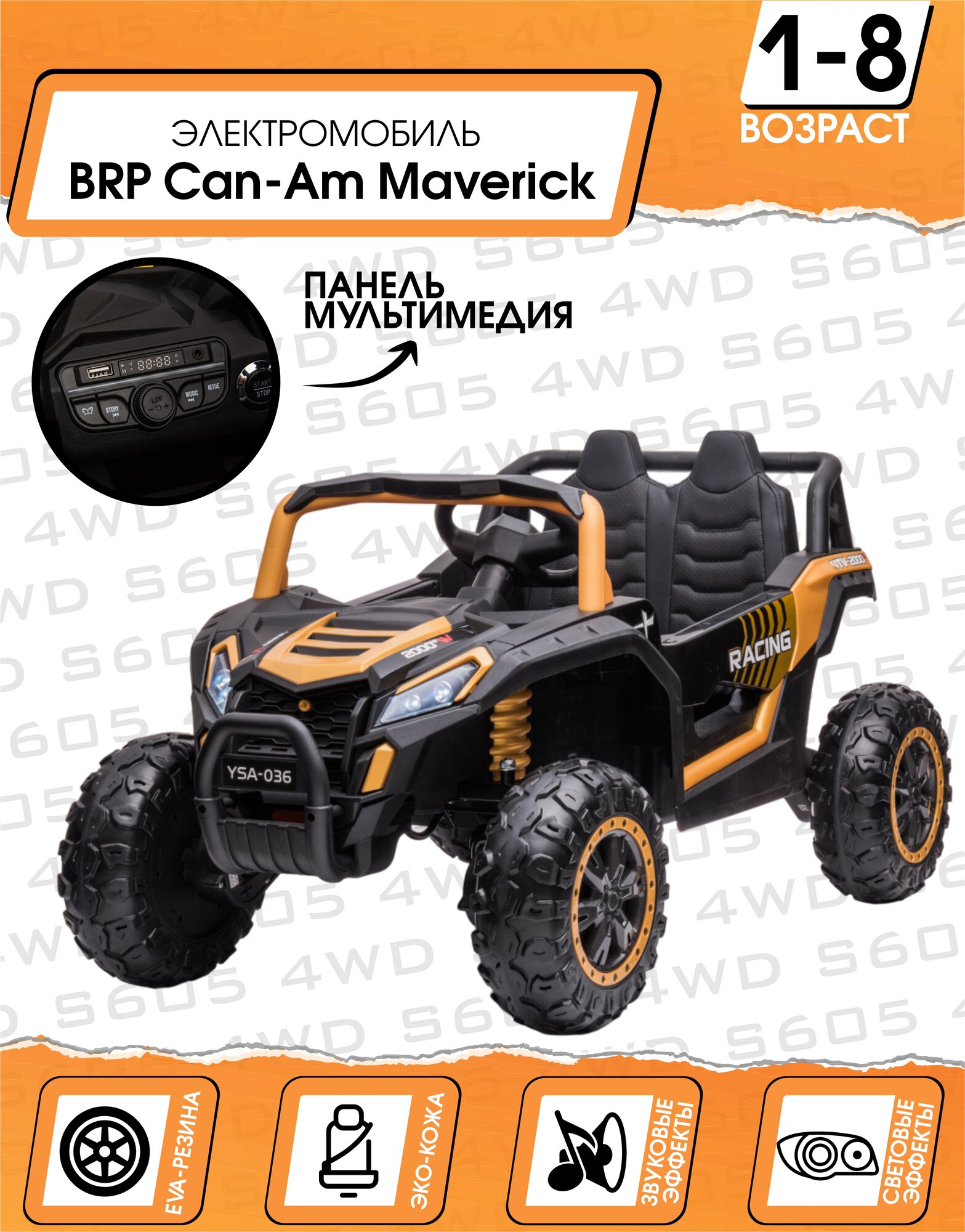 Купить Электромобиль Buggy A036 4WD (Золотой) ДО 8 КМ/Ч + ВЫСОКАЯ НАГРУЗКА с доставкой по всей России. Электромобиль Buggy A036 4WD (Золотой) ДО 8 КМ/Ч + ВЫСОКАЯ НАГРУЗКА: сравнение цен, характеристики, фото, актуальное наличие и цены.