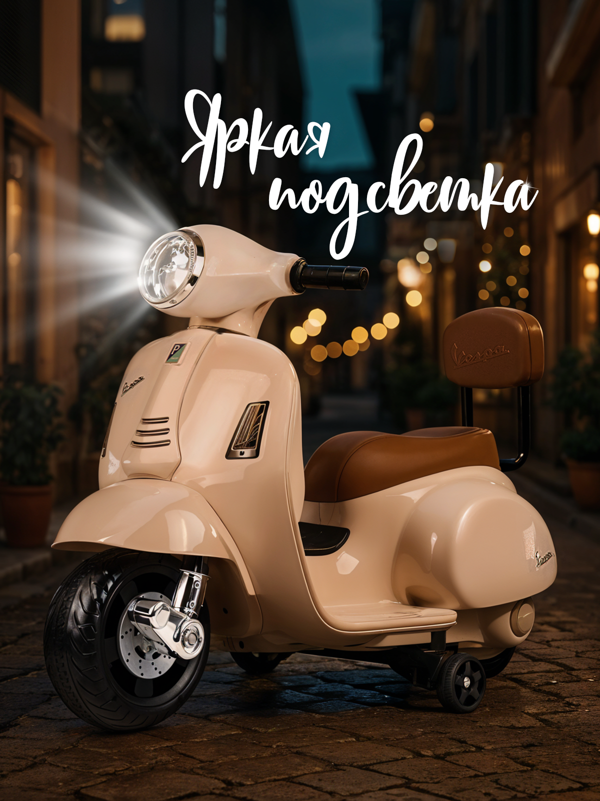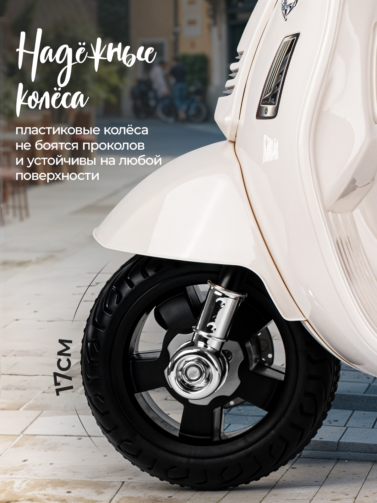 Купить Электромобиль детский, каталка аккумуляторная, скутер Vespa со светом и звуком с доставкой по всей России.