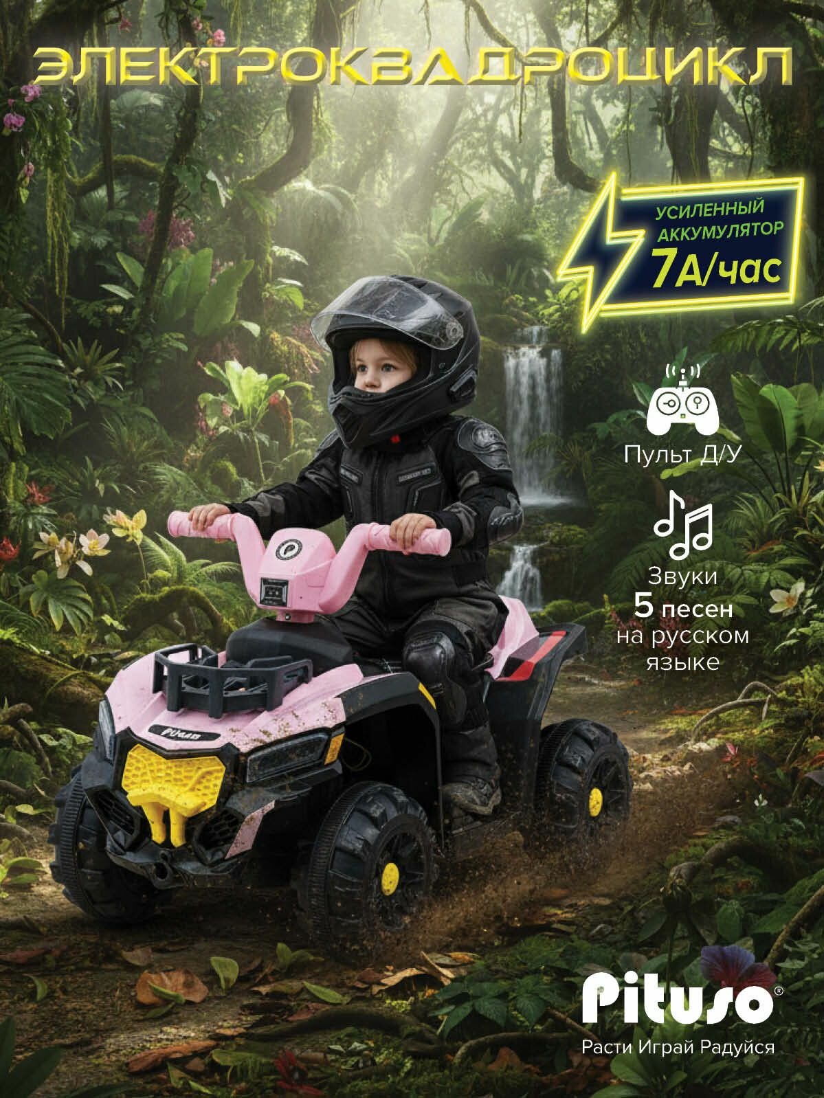 Электромобиль детский с пультом, квадроцикл Pituso 029, батарея 6V/7Ah, мотор 20W*1 Розовый: сравнение цен, характеристики, фото, актуальное наличие и цены.