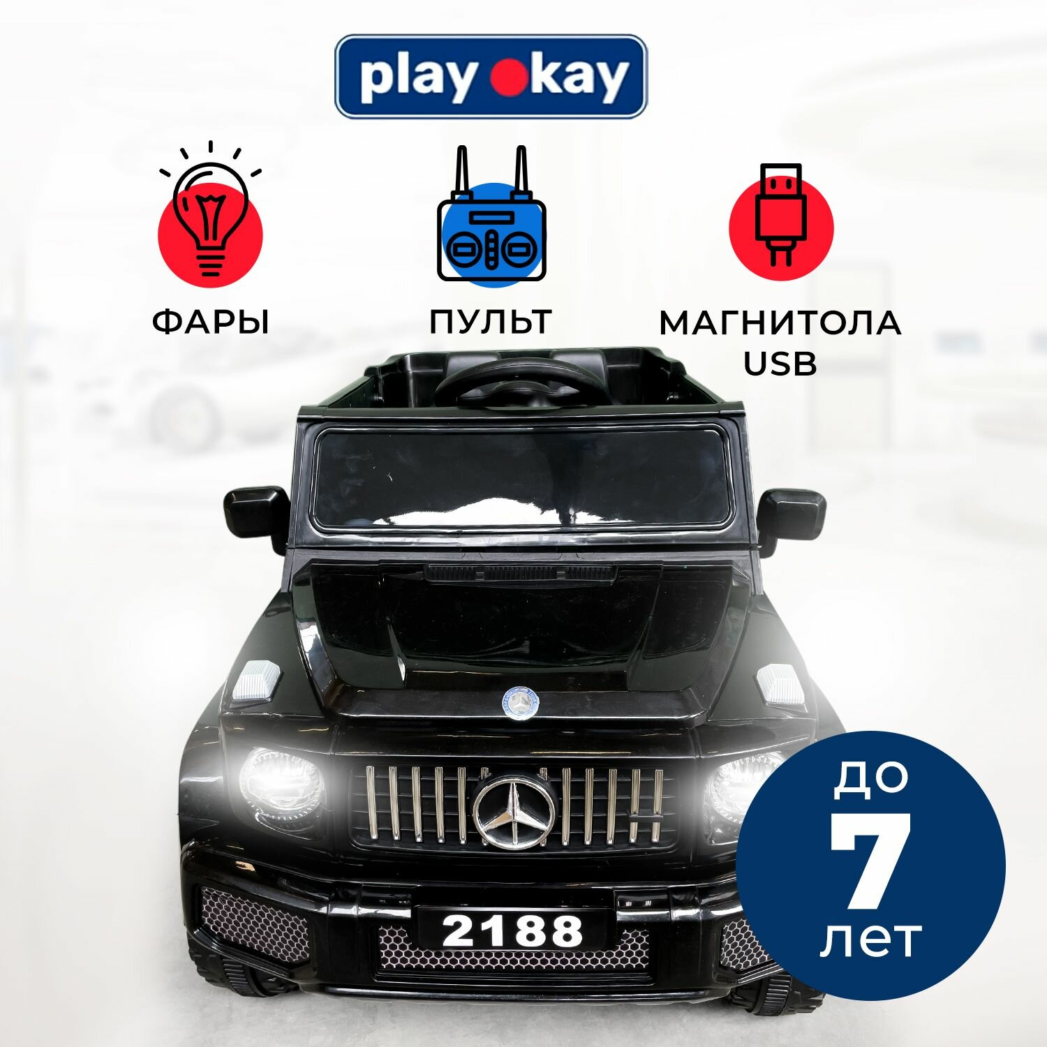 Купить Электромобиль детский с пультом управления, световыми и звуковыми эффектами AMG Mercedes Play Okay, машина на аккумуляторе для детей до 7 лет 20 кг из пластика и экокожи Мерседес Гелендваген ( Гелик ) с доставкой по всей России.