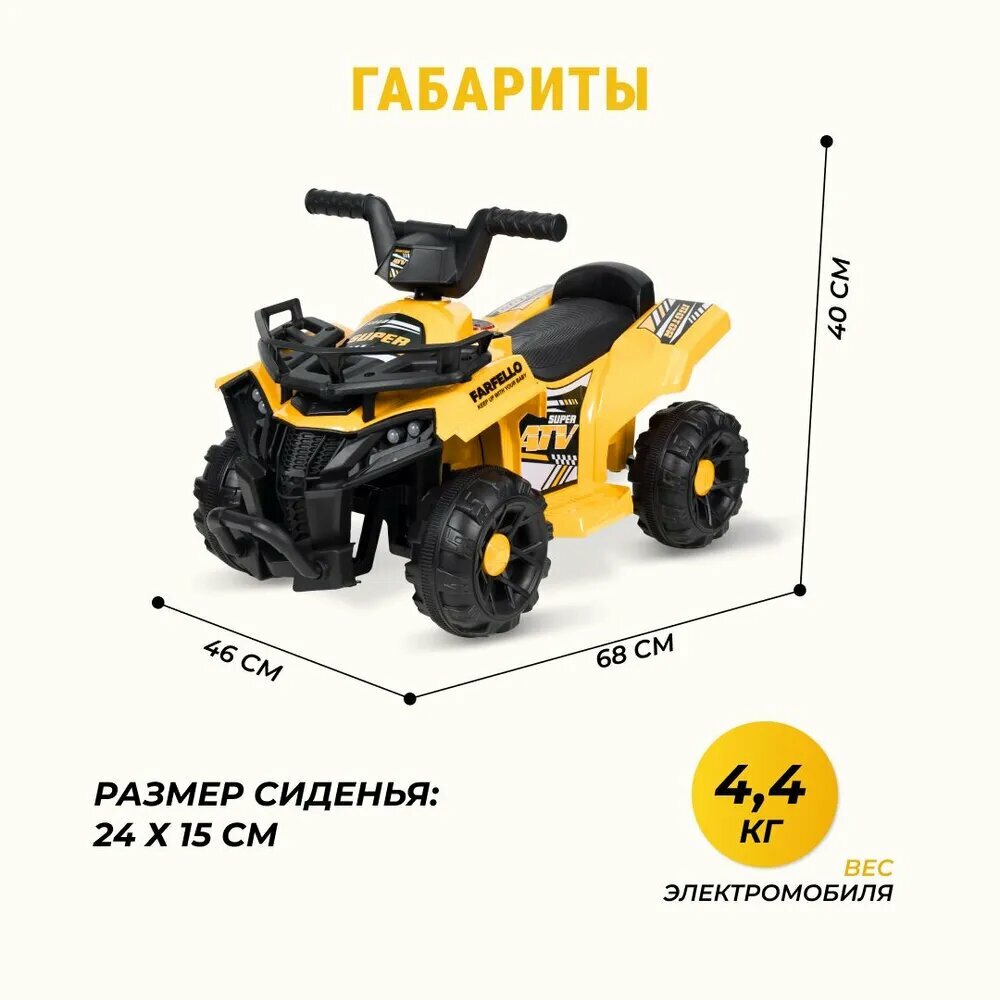 Купить Электромобиль-квадроцикл детский Farfello «SR700», для малышей, 1 место, желтый с доставкой по всей России.