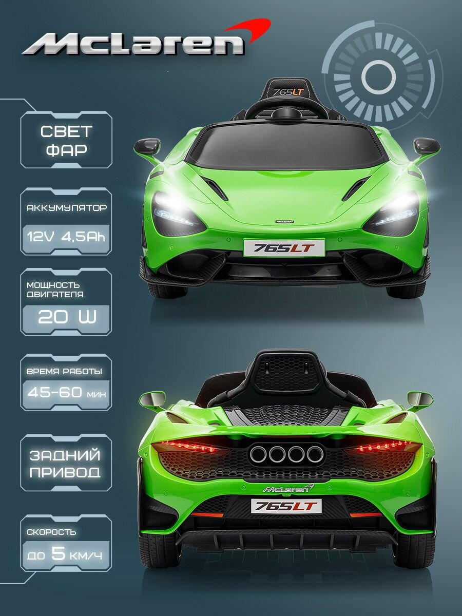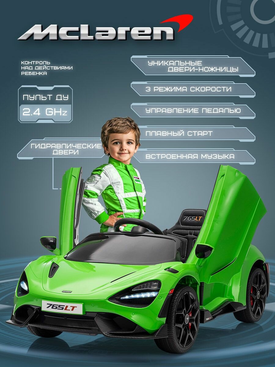 Детский электромобиль на аккумуляторе и с пультом управления, Mclaren 765LT, цвет зелёный: сравнение цен, характеристики, фото, актуальное наличие и цены.