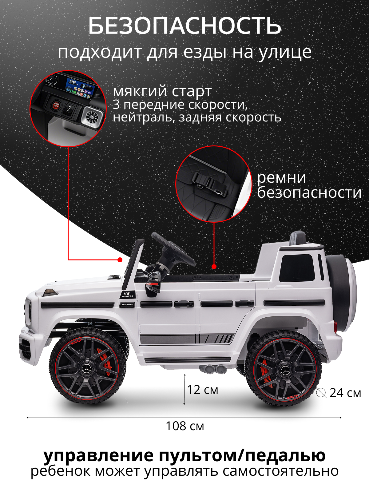 Электромобиль детский Tommy Mercedes-Benz G63 AMG MB-5 белый, свет, звук, музыка (USB, AUX, microSD): сравнение цен, характеристики, фото, актуальное наличие и цены.