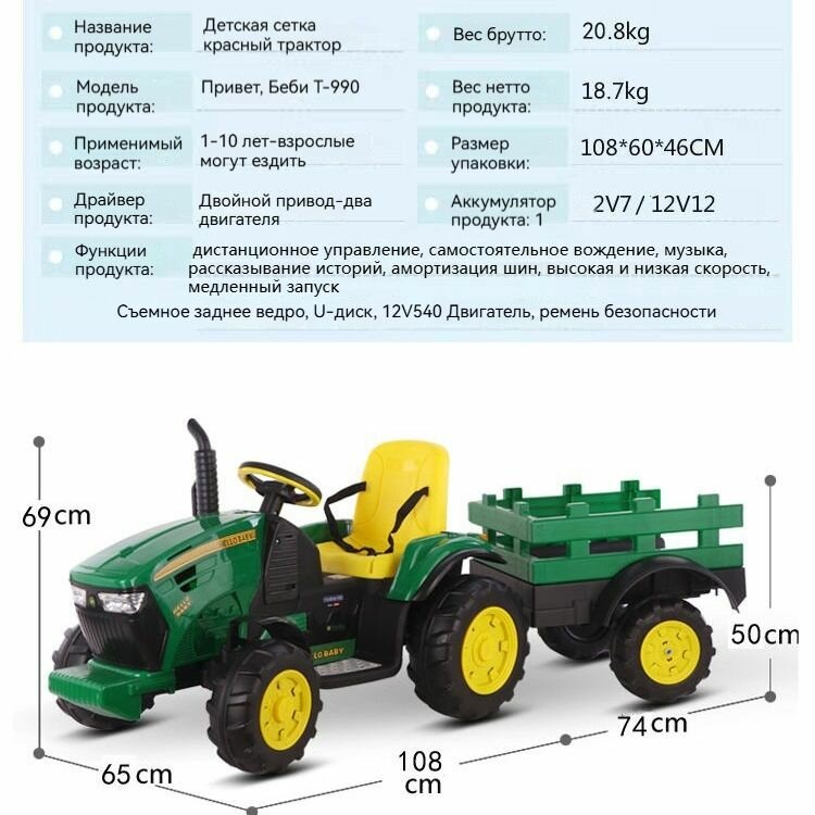 Купить Электромобиль-трактор с прицепом, на аккумуляторе с пультом с доставкой по всей России. Электромобиль-трактор с прицепом, на аккумуляторе с пультом: сравнение цен, характеристики, фото, актуальное наличие и цены.
