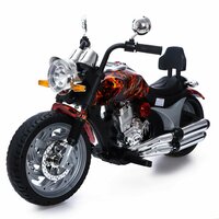Детский электромотоцикл «Чоппер» оснащён двумя моторами и может разогнаться до 3–5 км/ч. Этой скорости достаточно для весёлых игр с детьми от 3 лет. Такой подарок обязательно понравится каждому юному гонщику! Особенности Заводится с кнопки. В тёмное время суток можно включить фары. Два аккумулятора ёмкостью 4,5 А/ч позволяют непрерывно кататься на машинке в течение 50–70 мин. С аудиоплеера можно проигрывать музыку. Также на нём расположен индикатор заряда батареи. Большие колёса обеспечат высокую проходимость. Сиденье оснащено спинкой, поэтому поездка будет комфортной. Максимальная нагрузка — 20 кг. С таким электромотоциклом ребёнок почувствует себя взрослым водителем! Игрушка выглядит как настоящий мотоцикл, поэтому она подарит каждому малышу незабываемые впечатления. А также улучшит координацию, воображение и творческие способности.