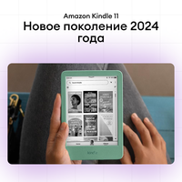 Тонкий и легкий Kindle 2024-го поколения с подсветкой в корпусе зеленого цвета. Сенсорный экран не бликует даже на ярком солнце. 16 Гб встроенной памяти и возросшее быстродействие позволяют загружать книги через Wi-Fi и хранить на устройстве большую библиотеку. Сенсорный экран четко реагирует на нажатия, позволяя одним касанием пальца перелистывать страницы, при этом у него есть встроенная защита от случайных прикосновений. Наличие мягкой, так называемой «ламповой подсветки» позволяет комфортно читать при разном освещении, в любое время суток. Интенсивность подсветки вы можете регулировать самостоятельно. В 2024 версии Amazon Kindle предусмотрен темный режим экрана: пользователь может инвертировать цвета и читать белый текст на черном фоне. Этот режим отлично подходит для чтения в полной темноте. Стильный внешний вид, закругленные углы, экран, напоминающий лист хорошей бумаги, размер, обеспечивающий удобное положение электронной книжки в руке. Характеристики. Книги AZW, AZW3, DOC, DOCX, EPUB, HTML, MOBI, PDF, TXT Изображения BMP, GIF, JPEG, PNG Градаций серого 16 Диагональ 6 дюймов Разрешение 300 ppi Подсветка 4 светодиода Встроенная память 16 Гб Интерфейс USB USB-C Wi-Fi Продолжительность работы 10000 страниц Размеры 157,8 x 108,6 x 8 мм Вес 158 г