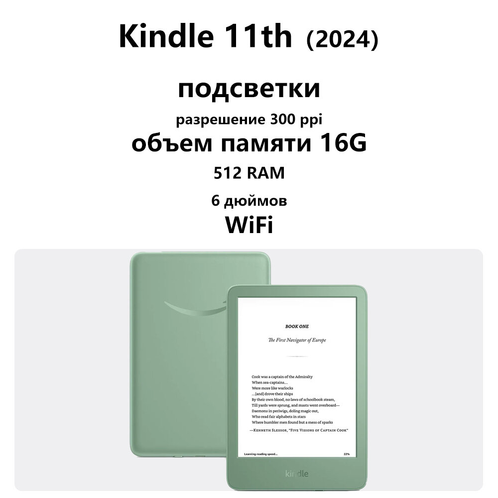 Купить Электронная книга, Amazon Kindle 11,6-дюймовый чернильный экран, 2024 г, 16 ГБ, зеленый цвета матча с доставкой по всей России.