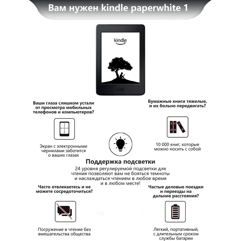 Купить Электронная книга Amazon Kindle Paperwhite 1, экран с подсветкой,6-дюймовый экран,212 ppi, 2ГБ,черное с доставкой по всей России. Электронная книга Amazon Kindle Paperwhite 1, экран с подсветкой,6-дюймовый экран,212 ppi, 2ГБ,черное: сравнение цен, характеристики, фото, актуальное наличие и цены.