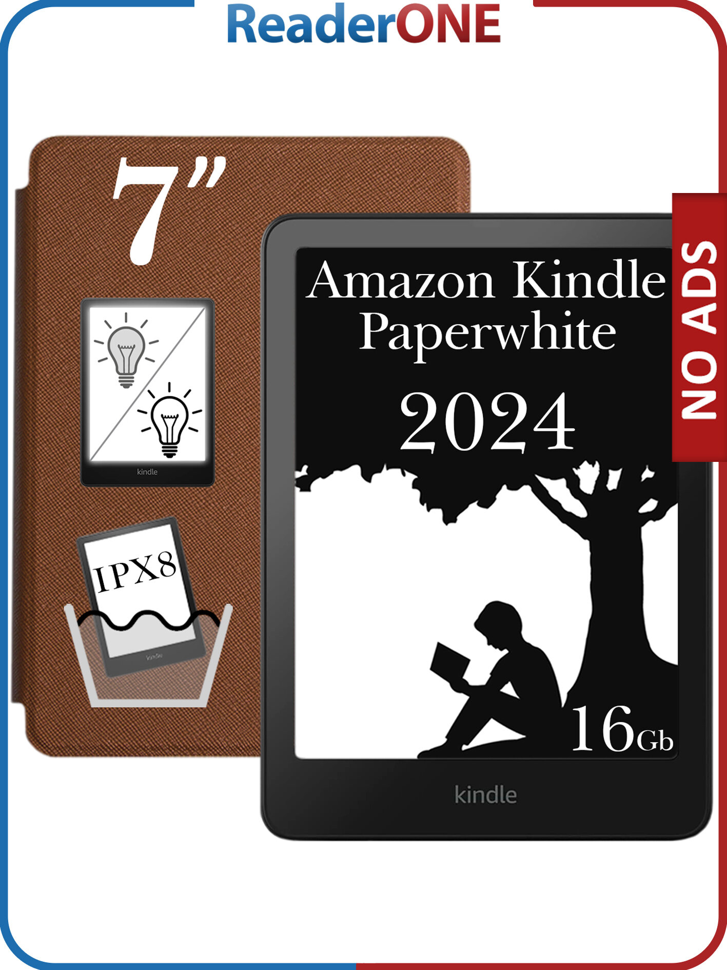 Купить Электронная книга Amazon Kindle PaperWhite 12 2024 16Gb Black, версия без рекламы с обложкой ReaderONE PW Brown с доставкой по всей России.