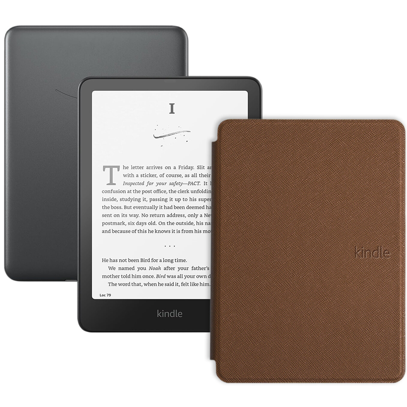 Электронная книга Amazon Kindle PaperWhite 12 2024 32Gb SE Metallic Black с обложкой ReaderONE PaperWhite 2024 Brown: сравнение цен, характеристики, фото, актуальное наличие и цены.