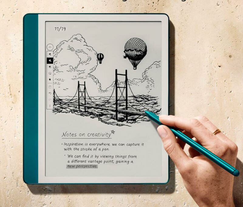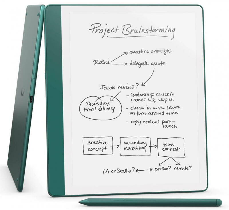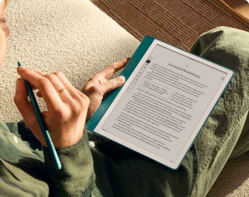 Благодаря отличному разрешению 300 ppi и адаптивной «тёплой» подсветке, дисплей Kindle Scribe выглядит так же, как лист качественной белоснежной бумаги. Внутренней памяти объемом 64 Гб хватит, чтобы загрузить на устройство огромную библиотеку электронных текстов. Amazon Kindle Scribe создан не только для чтения, но и для работы с документами. 1 ГБ оперативной памяти и процессор с тактовой частотой 1 ГГц обеспечивают высокую скорость работы. При помощи фирменного стилуса, можно рисовать, оставлять заметки и комментарии. Записи автоматически сохраняются, упорядочиваются и могут быть экспортированы по электронной почте.