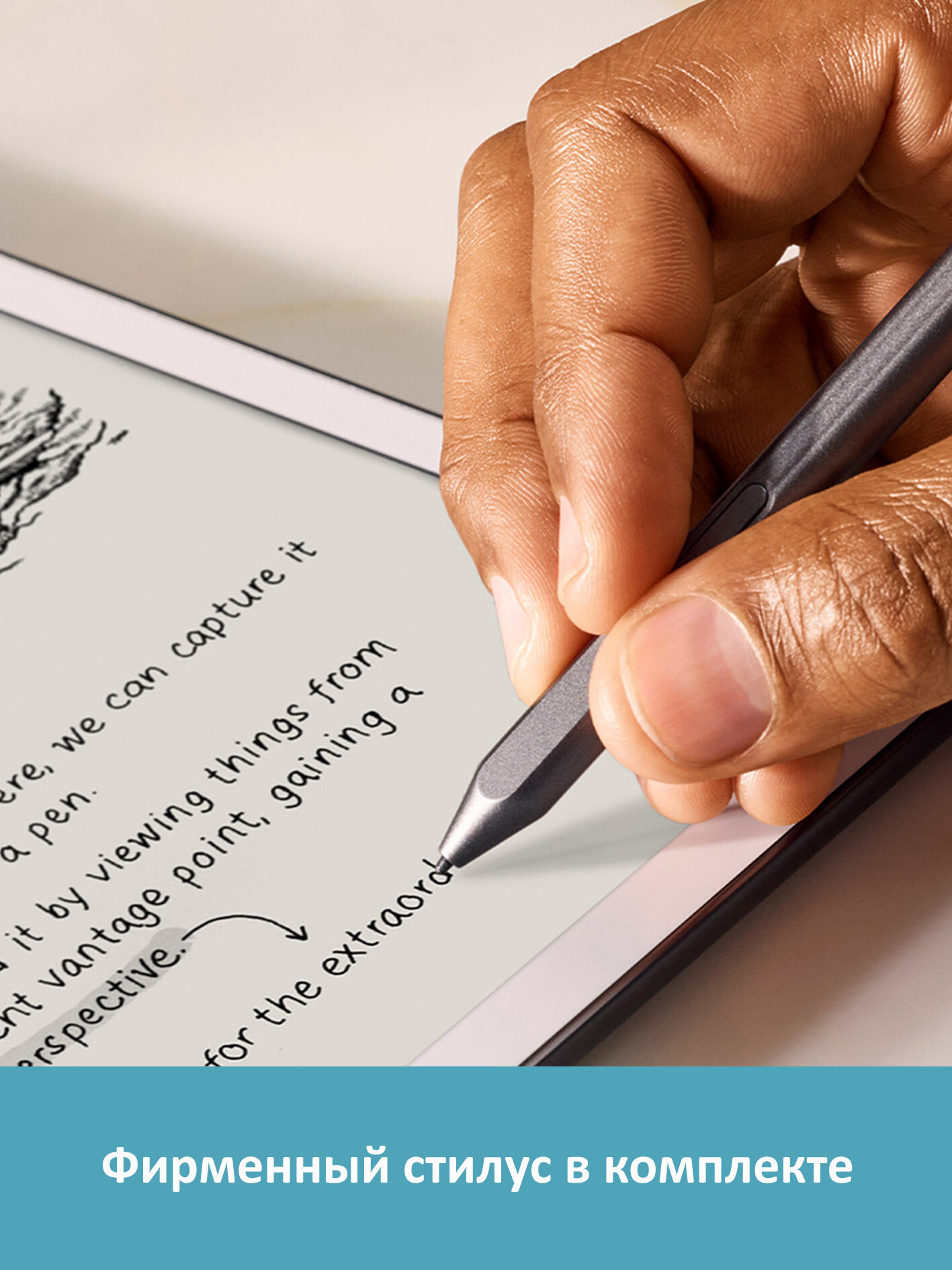 Встроенные инструменты на основе искусственного интеллекта помогут преобразовать рукописные заметки в цифровой текст. Функция Active Canvas позволяет писать и оставлять комментарии прямо на страницах книг. Стилус Kindle Scribe Premium Pen, разработанный специально для электронной книги Kindle Scribe, теперь имеет настраиваемую кнопку быстрого доступа и ластик с мягким наконечником. Писать пером на экране так же легко и естественно, как на обычной бумаге. Стилус обладает высокой точностью и моментальным откликом, ему не требуется зарядка или настройка. Перо крепится к правой боковой панели ридера при помощи магнита.