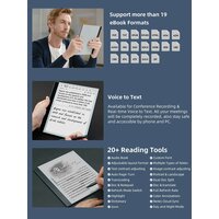 Аудиокнига, настраиваемый формат макета, регулировка контрастности текста, автопереворот страниц, транскодирование, док и блокнот, переключение режимов обновления, выделение, словарь, масштабирование, пользовательский шрифт, несколько типов заметок, регулировка контрастности изображения, портрет и ландшафт, двойное разделение доков, док и перевод, полная частота обновления, цветные аннотации, синхронизация с облаком заметок, дневной и ночной режимы.