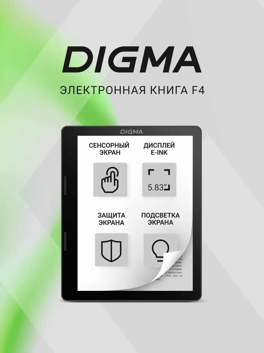 Купить Электронная книга Digma F4, подсветка, 8 ГБ, диагональ 5.83″, черная с доставкой по всей России. Электронная книга Digma F4, подсветка, 8 ГБ, диагональ 5.83″, черная: сравнение цен, характеристики, фото, актуальное наличие и цены.