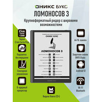 Оникс букс Ломоносов 3 — крупноформатный ридер c 10,3-дюймовым экраном высокого разрешения E Ink Carta Plus (Carta 1200) с подсветкой и сенсорным управлением. Модель построена на современной аппаратной платформе и базируется на операционной системе Android 12, позволяющей устанавливать и использовать дополнительные приложения. В составе ПО ридера имеется предустановленный магазин RuStore, в каталоге которого представлено более 40 тысяч программ. Благодаря встроенному аудиоплееру можно прослушивать музыку и аудиокниги, а функция TTS позволяет озвучивать текстовые файлы. Наличие модуля Wi-Fi дает возможность пользоваться сетевыми сервисами, а поддержка Bluetooth — подключать внешние устройства. Модель выполнена в тонком легком корпусе, экран ридера закрыт защитным стеклом ONYX Glass. В комплекте с оникс букс Ломоносов 3 поставляется стильный защитный чехол. Данная модель отлично подойдёт тем пользователям, кто планирует совмещать чтение книг и работу с документами.