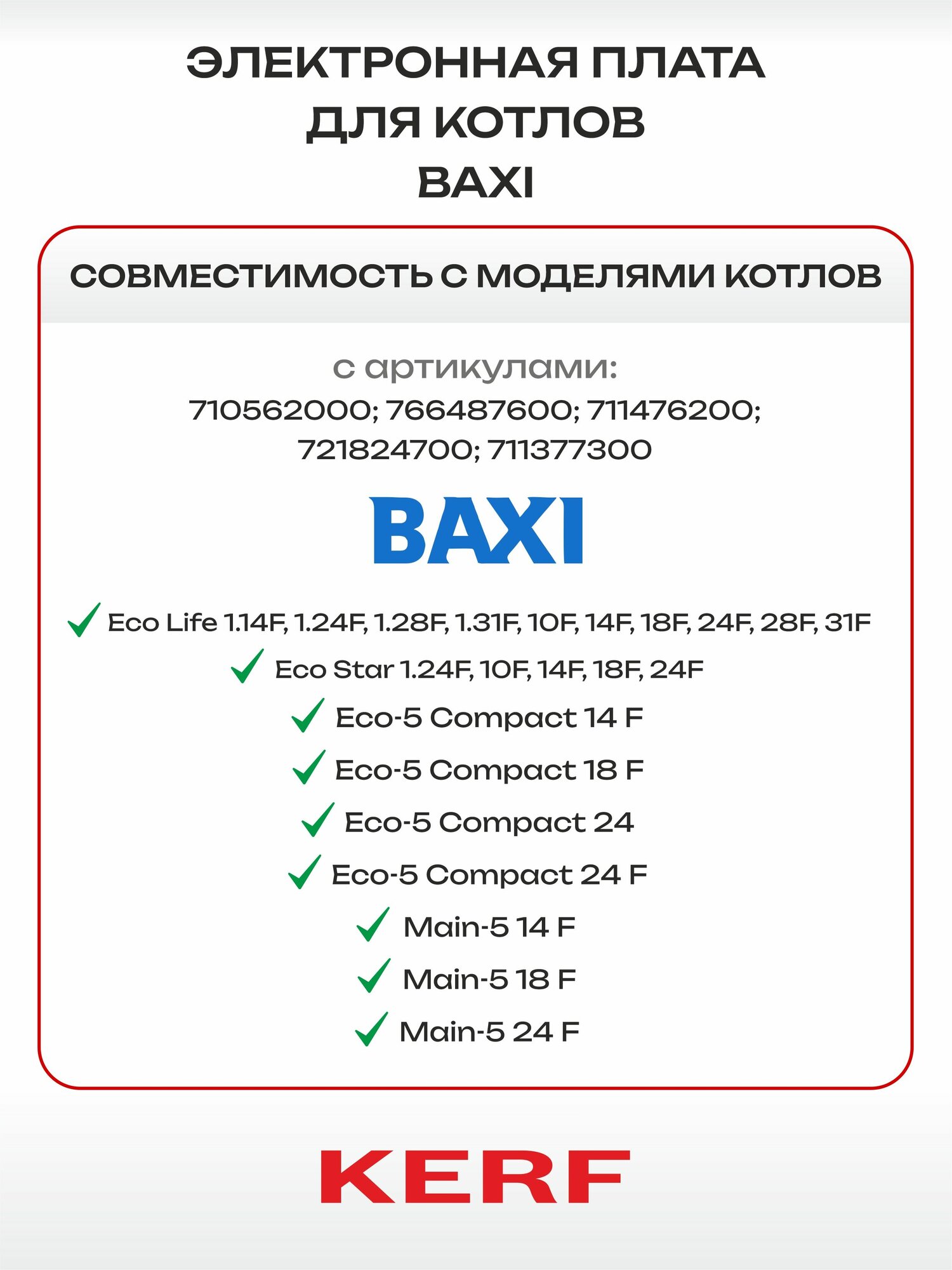 Электронная плата Kerf (Керф) важная запчасть для газового котла Baxi (Бакси). Она отвечает за управление и автоматику системы отопления. Подходит для настенных и напольных двухконтурных моделей, обеспечивая эффективное распределение тепла. Основной компонент платы микропроцессор, который контролирует работу котла и взаимодействует с датчиками. Эти датчики отслеживают состояние теплоносителя, регулируя его температуру. Плата оснащена микропроцессором, в котором запрограммированы логические процессы котла, обеспечивая точность настройки параметров.