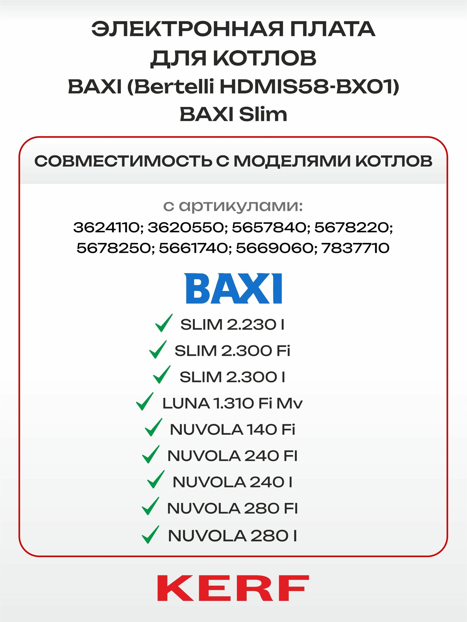 Электронная плата для котлов BAXI HDIMS58-BX01 SLIM - это отличный выбор для тех, кто хочет получить максимальную эффективность от своего котла. Она проста в установке и эксплуатации, а также обладает высокой степенью защиты от внешних факторов.