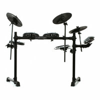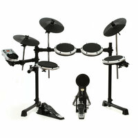 Звуковой модуль HDS110USB, педаль бас барабана, пэды и стойки – 1 х 8" двух зонный пэд малого барабана, 3 х 8" пэда томов, 3 х 12" пэда тарелок, хай-хэт триггер педаль, рама с установленными стойками, кабель, барабанные палочки