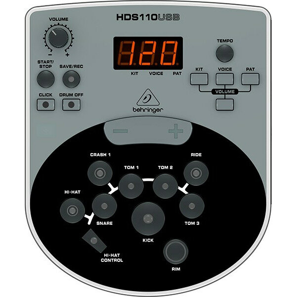 BEHRINGER XD8USB - электронная барабанная установка с 8 элементами, 123 звуками, 15 моделями установок и USB интерфейсом имеет звуковой модуль Behringer HD110USB с 10 заводскими пресетами и 5 пользовательскими программируемыми установками.
