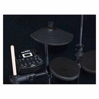 Электронная ударная установка Medeli DD401. Установка состоит из пэдов 3 томов, тарелок crash, 1 малого барабана, hi-hat, ride, педаль хай-хэта и басового барабана. 10 предустановленных наборов ударных. Переключатель триггеров. Светодиодный дисплей. Вес установки - 10,6 кг в сборе.