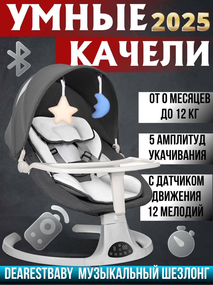 Электронные качели для новорожденных 3в1, детский шезлонг с 0 мес до 12 кг, качели гнездо, пульт ДУ, темно-серый, кокон: сравнение цен, характеристики, фото, актуальное наличие и цены.