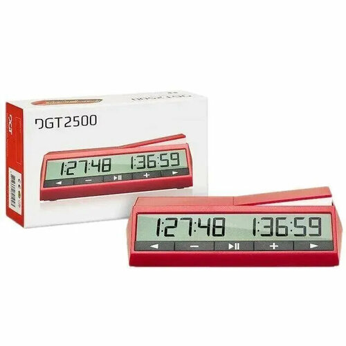 Электронные шахматные часы DGT 2500; Отличный помощник для игры в шахматы; Официально подтверждены и одобрены технической комиссией фиде для проведения турниров; Возможности часов: поддерживают все возможные контроли времени (Фишера, Бронштейна, с задержкой, Армагеддон, Песочные часы и другие), 36 предустановленный контроль времени, 5 слотов памяти для ручных настроек, постоянная память для ручных настроек — даже после отключения введённые вручную настройки сохраняются, звуковой сигнал (с возможностью отключения) предупреждает об истечении времени, есть возможность добавлять время по ходу игры одному из игроков; В комплекте имеются: две батарейке "AA", инструкция; Размер часов: 19,8х11х6 см; Размер часов в коробке: 20,7х20,6х6,5 см.