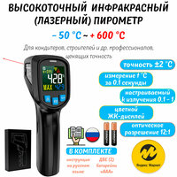 Электронный термометр оснащен режимом непрерывного измерения температуры; функцией сохранения данных; режимом ограничения минимальной и максимальной температуры (с функцией оповещения); режимом отображения максимально измеренной температуры за сеанс измерения, функцией отключения лазера и др. Время отклика/измерения составляет менее 0.5 секунды. Кондитерский/кулинарный пирометр подходит для измерения температуры шоколада, гриля/барбекю и поможет вам в приготовлении продуктов. Строительный пирометр найдет щели в окнах и стенах, проверит теплоизоляцию дома, замерит температуру труб водоснабжения, отопления, аккумулятора или зарядного устройства и многое другое. Бесконтактный термометр оснащен цветным ЖК-дисплеем с подсветкой, который не дает уставать глазам и отображает все необходимые показатели. Модель прекрасно подходит для диагностики систем отопления, автомобиля, оборудования, электропроводки, выявления теплопотерь.