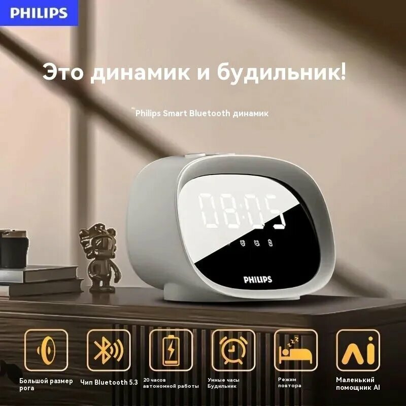 Купить Электронный будильник Philips Bluetooth TAS2909, белый с доставкой по всей России.