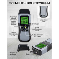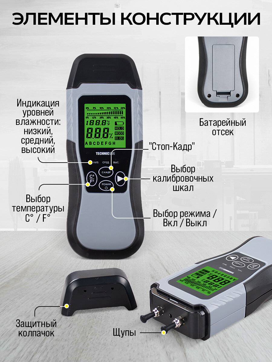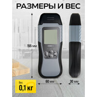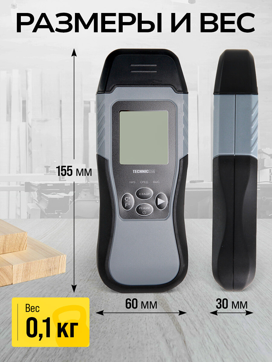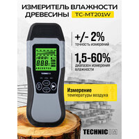 TC-MT201W – это прибор предназначенный для измерения влаги в древесине и строительных материалах. Позволяет быстро оценить уровень влаги сырья из мягких и твердых сортов древесины, бетона, штукатурки, гипсокартона, кирпича. Модель выполнена из прочного пластика и оснащена ЖК дисплеем с зеленой подсветкой, что обеспечивает удобную эксплуатацию в условиях плохой видимости. Диапазон измерений влажности от 1.5% до 60%. Точность измерений +/-2%. Для наиболее точного определения влажности у определенных пород древесины имеется 8 калибровочных шкал. Влагомер работает от 2 батарей LR03 (ААА) и в целях экономии заряда при бездействии отключается автоматически через 3 минуты. Данный прибор имеет компактные размеры и удобно сидит в руке. Модель TC-MT201W подходит как для бытового, так и для профессионального применения.