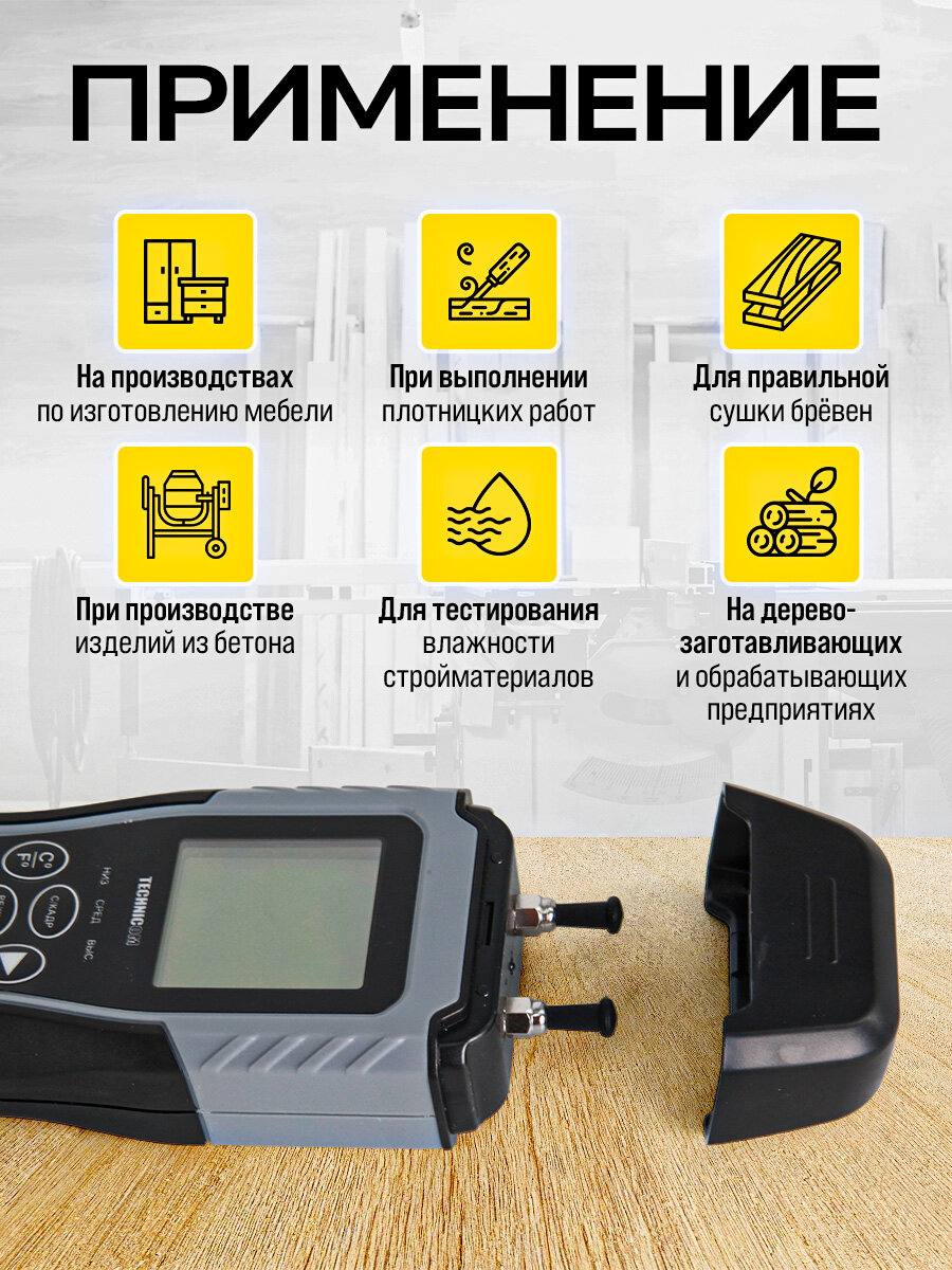 - Диапазон измерений строительных материалов: 1,5 – 33%