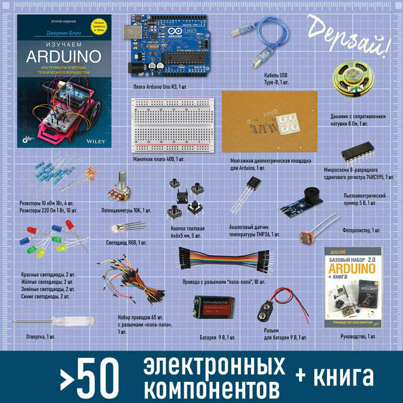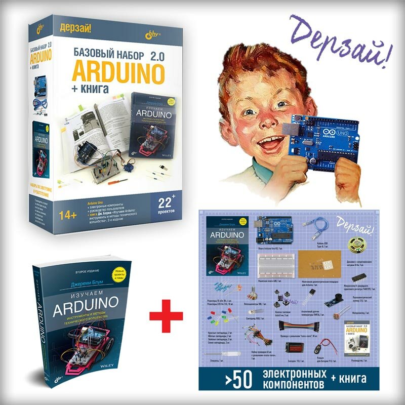 Электронный конструктор БХВ-Петербург Дерзай! Arduino. Базовый набор 2.0 + книга.: сравнение цен, характеристики, фото, актуальное наличие и цены.