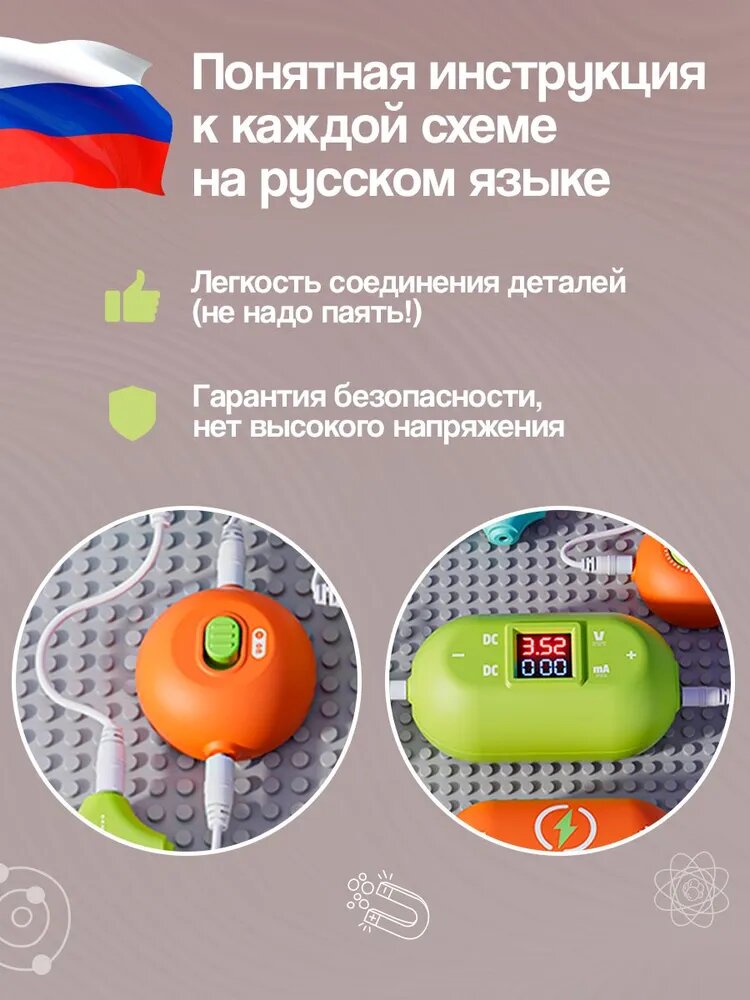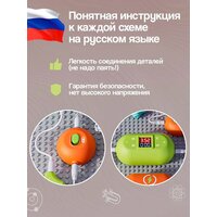 Электронный конструктор начального уровня, позволяющий даже маленькому от 3 лет ребёнку познакомиться с удивительным миром электроники и станет отличным подарком на 23 февраля. Чтобы привить детям интерес к науке и технологическому творчеству, начните с электронного конструктора! Физика – сложная для понимания и освоения наука. С помощью данного набора ребёнок безопасно изучит – как работает электрическая цепь. Подарите ребёнку возможность с легкостью и интересом освоить базовые навыки в физике, строить электрические цепи, и экспериментировать, подключать различные девайсы из комплекта! Динамический конструктор развивает не только умственные способности, но и мелкую моторику рук. Модули для электрической цепи, крупные детали, взаимосвязанные элементы вовлекут ребёнка в весёлую игру и конструирование, с которым справится каждый. Даже без помощи взрослых, используя только очень понятное цветное руководство, всего за несколько минут ребенок сможет собрать одну из 104 схем, на которые родители 10 лет назад тратили целые недели. Абсолютная безопасность и простота сборки — не надо паять! Простота соединений и ясность описания позволяет собирать сложные схемы даже ребенку пяти лет, а многообразие прилагаемых элементов позволит даже умудренному в электронике человеку собрать что-то новое и затем воплотить это в реальной жизни. Удовольствие получают не только дети, но и их родители! Игра с конструктором станет не только веселым занятием, но и ценным опытом в освоении STEM-дисциплин (наука, технологии, инженерия и математика, физика). Данный набор - это великолепная игрушка, которая станет отличным подарком для маленьких мальчиков и девочек. Он позволяет создать интерактивные конструкции, развивая логику и креативность. Подходит для детей любого возраста, увлекающихся техникой и наукой. В комплект данного набора входит «Инструкция» и детали, необходимые для выполнения предложенных в руководстве проектов. Этот конструктор напоминает всем известный Знаток / Робототехника - но с совершенной другой методикой соединения цепи - в данном случае через кабели. Отличная идея для подарка на новый год! Внимание! Для работы требуются батарейки: 3 х АА (для силового модуля - в комплект не входят)