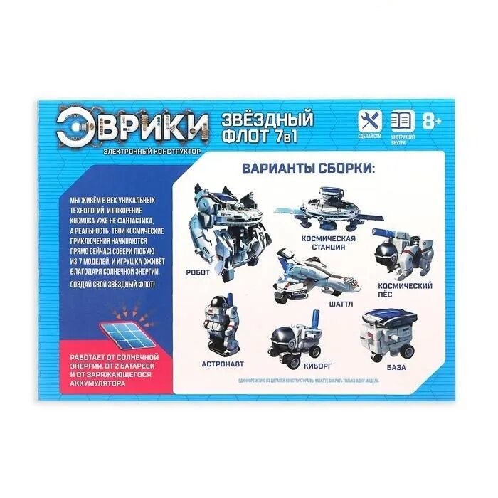 Электронный конструктор Эврики «Звездный флот», 7 в 1, работает от солнечной батареи (1824303): сравнение цен, характеристики, фото, актуальное наличие и цены.