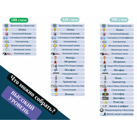 180 схем, размер коробки 41х27,5х3,5 см, для работы схем необходимы 4 батареи (приобретаются отдельно) размера АА, напряжением 1,5 V, или аккумуляторы аналогичного размера, напряжением 1.2 V