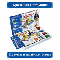 Электронный конструктор знаток 180 схем начального уровня, познакомит ребёнка с удивительным миром электроники! Собираем схемы с лампочкой и вентилятором, проводим эксперименты с магнитом, запускаем летающий пропеллер! Исследуем звуковые схемы, автоматические осветители, охранные сигнализации, музыкальные звонки, светодиодный фонарик. Знакомимся с фоторезистором, изучаем световые и звуковые сигналы транспортных средств спецслужб! В наборе 180 разных проектов, которые наглядно демонстрируют принципы работы простейших электронных устройств. Яркое и понятное руководство поможет Вам, всего за несколько минут, собрать и испытать схему! Ваш ребёнок научится собирать электрические схемы и выполнять задания к ним. Электронный конструктор знаток 180 схем позволит вам по-новому взглянуть на процесс обучения и проникнуться любовью к физике и электронике. Абсолютная безопасность и простота сборки — не надо паять! Удовольствие получают не только дети, но и их родители! В комплекте руководство пользователя с перечнем элементов и их расположением. Для работы схем необходимы ,4 батареи ,(приобретаются отдельно) размера АА, напряжением 1,5 V.