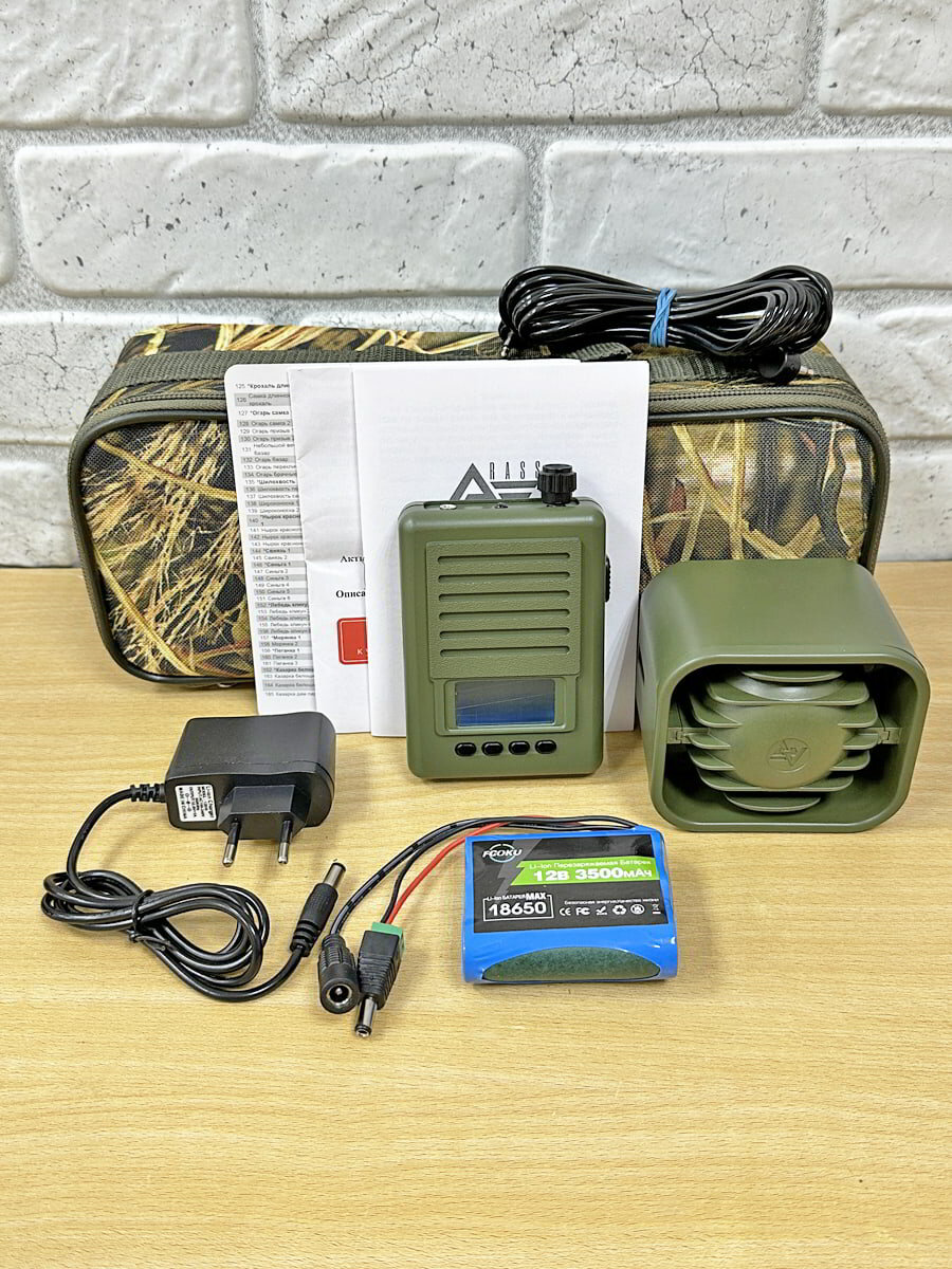 Электронный манок с фонотекой на 248 голосов птиц и зверей. Имеет цифровой усилитель сигнала, повышающий мощность и дальность действия. Оснащен большим OLED-дисплеем и дополнительными функциями: часы, таймер, секундомер, будильник. Внешний Li-ion 3500 mA/h аккумулятор и зарядка в комплекте, время непрерывной работы до 12 часов! Эл манок Егерь имеет встроенный динамик с дальностью приманивания до 150 м. Для увеличения радиуса действия в комплекте внешний активный динамик Берендей АВЗМ-3.