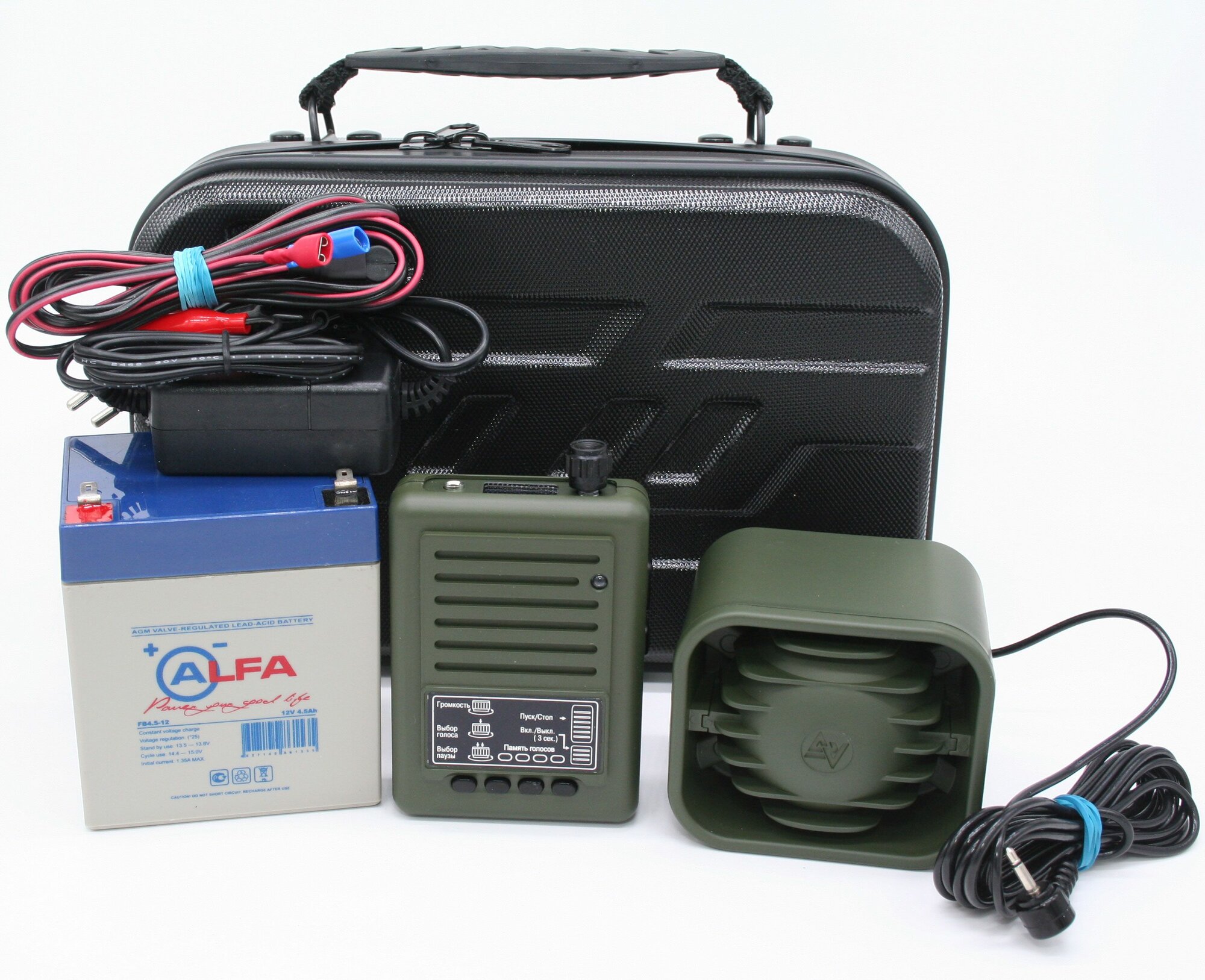 Электронный манок Егерь-56D (Берендей ТИП-56D) комплектуется динамиком Егерь ВЗМ-1, картой памяти на 248 манящих голосов на все виды птиц и зверей. Переключение голосов на устройстве реализуется с помощью 4 кнопок на фронтальной части устройства. Голоса программируются заранее. Кнопка включения и управления фонотекой манка расположена сверху. Рядом расположен информационный дисплей OLED с диагональю 0,96". Мини дисплей отображает название и номер голоса, уровень громкости, длительность паузы в секундах. Все голоса записаны на Micro-SD карту, голоса на штатной карте не подлежат редактированию, но можно сформировать свой набор голосов, записав его на чистую карту и воспроизвести в электронном манке. Устройство имеет свой внутренний динамик, эффективный радиус подманивания со встроенного динамика 150-200 метров. Комплект Егерь-56D (Берендей ТИП-56D) с динамиком Егерь ВЗМ-1, дальность подманивания до 2 км, в комплекте аккумулятор 12 вольт, 4.5 ампер, зарядное устройство от сети 220 вольт, кабель питания и весь комплект в пластиковом, влагостойком, ударопрочном кейсе.