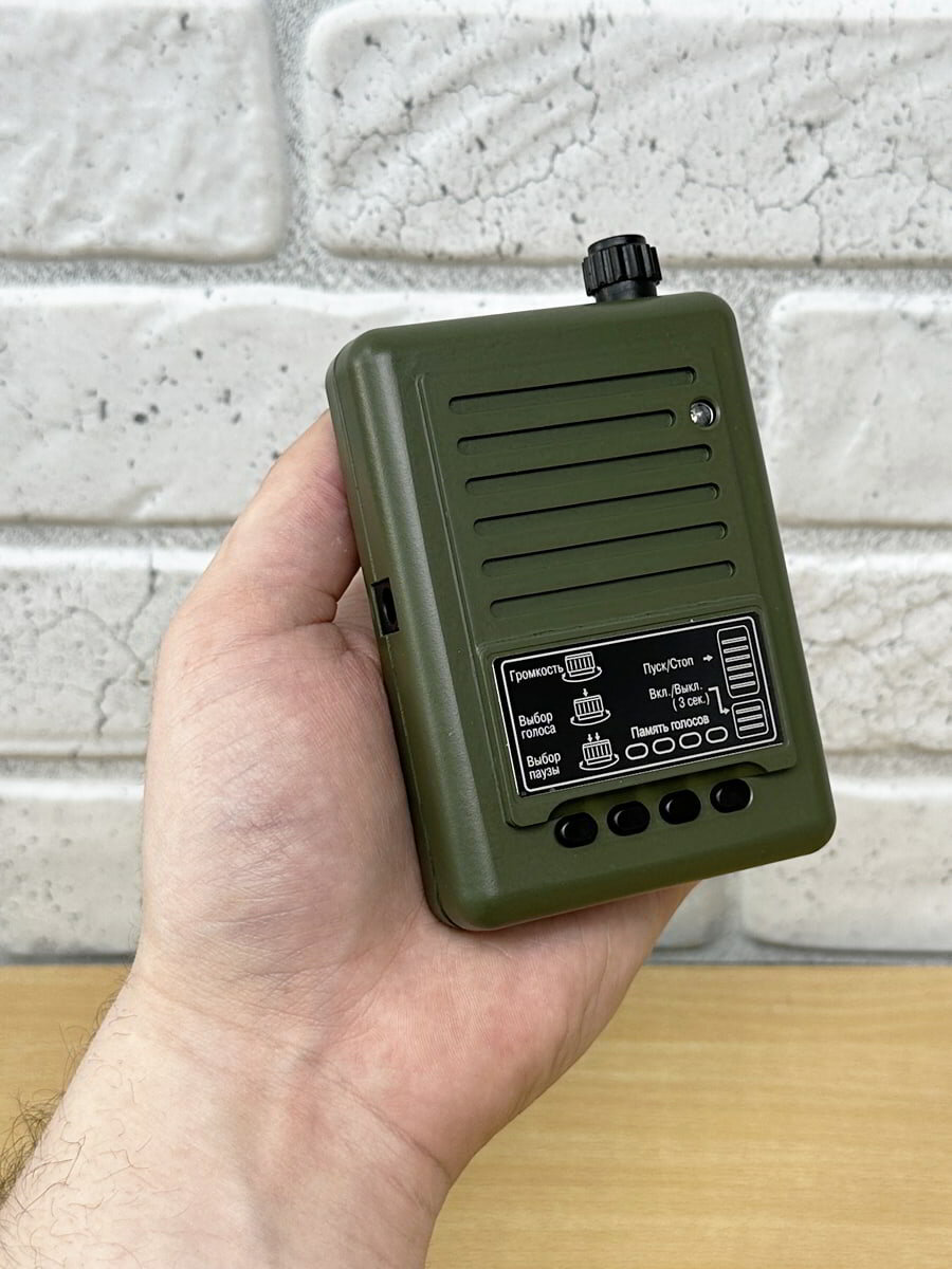 Электронный манок с фонотекой на 248 голосов птиц и зверей (полный список на фото). Имеет цифровой усилитель сигнала, повышающий мощность и дальность действия манка. Оснащен OLED-дисплеем, который отображает не только номер, но и название проигрываемого голоса. Имеет встроенный динамик с дальностью приманивания до 150 м. Для увеличения радиуса действия в комплект входит 1 внешний динамик Егерь ВМЗ.