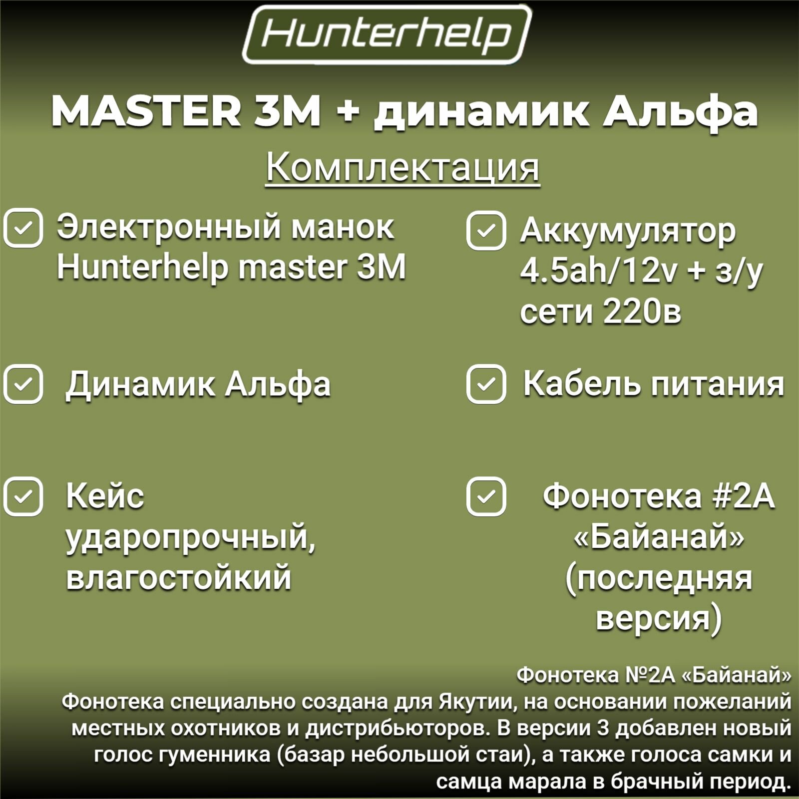 Электронный манок Hunterhelp MASTER 3M в комплекте с динамиком Альфа #2А Байанай: сравнение цен, характеристики, фото, актуальное наличие и цены.