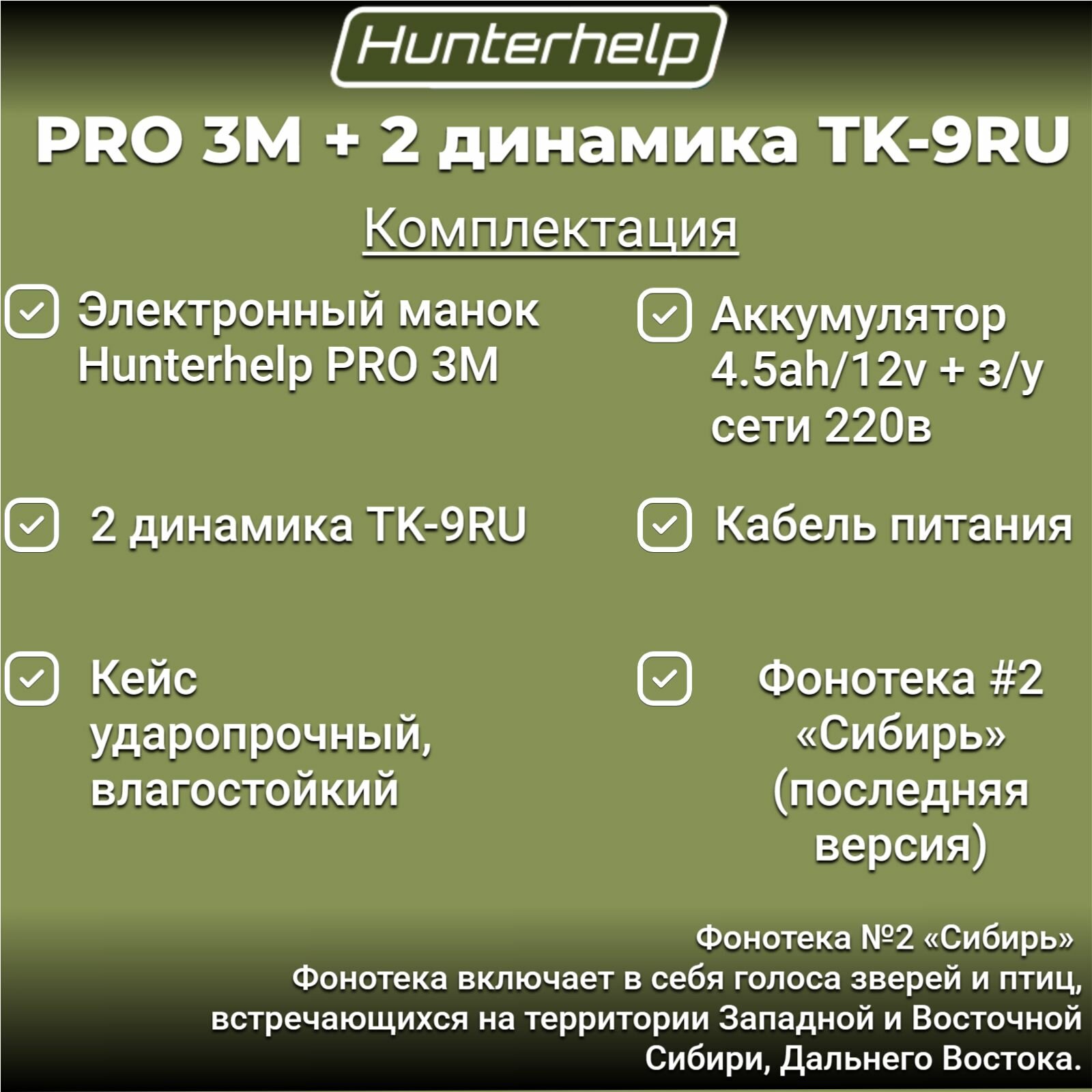 Электронный манок Hunterhelp PRO 3M в комплекте с 2 динамиками TK-9RU #2 Сибирь: сравнение цен, характеристики, фото, актуальное наличие и цены.